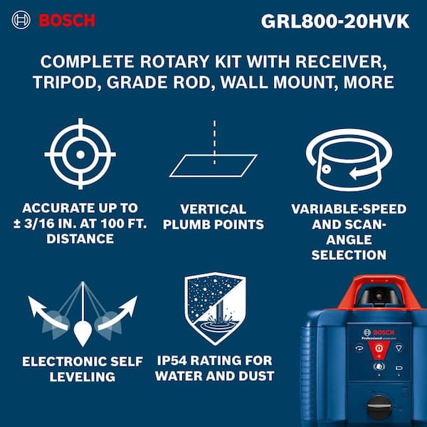 Questions and Answers for Bosch 800 ft. Rotary Laser Level Complete Kit Self Leveling with Hard Carrying Case