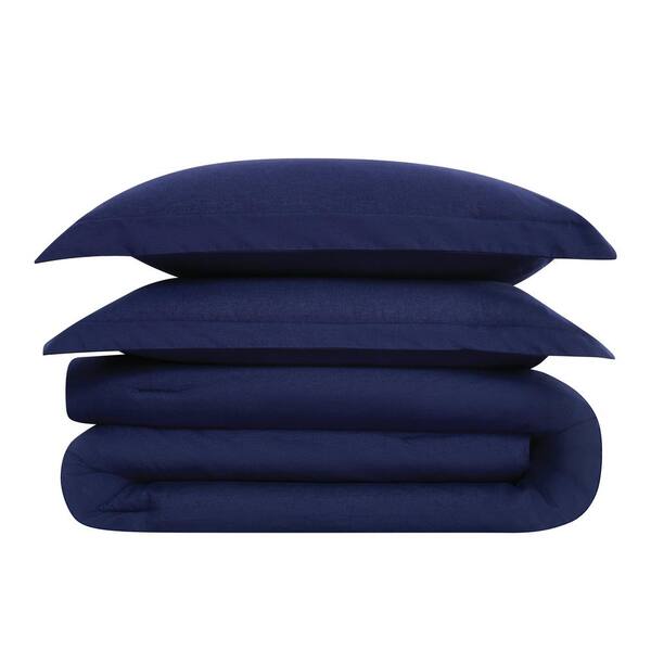 3-Piece Navy Blue Solid 100% Linen King Comforter Set