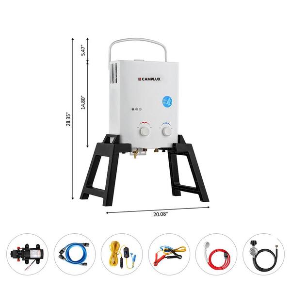 Questions and Answers for CAMPLUX Camplux 1.32 GPM Outdoor Portable Camping Propane Gas Tankless Water Heaters with Freestanding Stand and Carry Bag