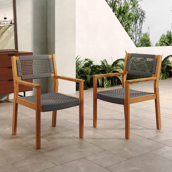 Veralis Outdoor Patio Braided Rope Dining Chairs, Acacia Wood, Dark Grey Plus Teak, (Set of 2)