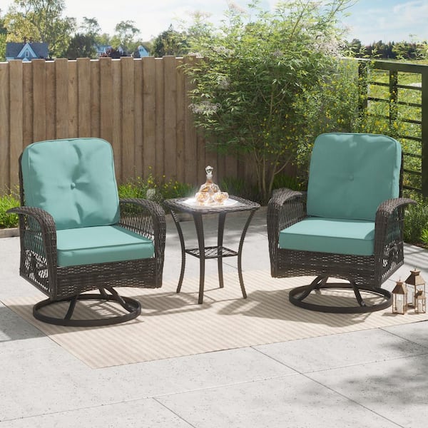Be the first to ask a question for CORVUS Livorna Brown 3-piece Steel Wicker Patio Swivel Chair Set with Aqua Cushions