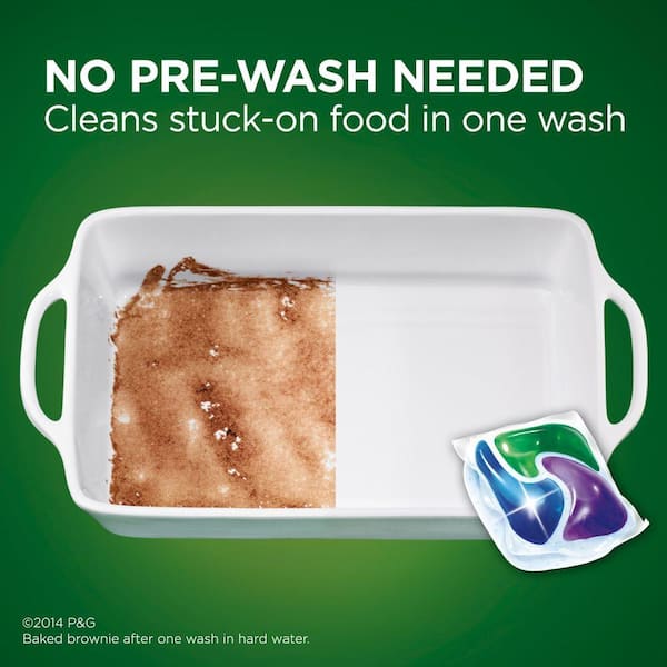 - Platinum ActionPacs remove burnt-on food with no pre-wash needed