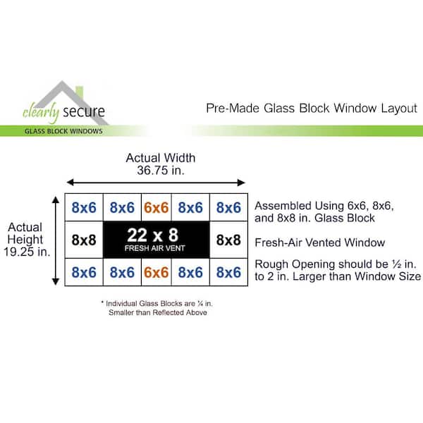 Be the first to ask a question for Clearly Secure 36.75 in. x 19.25 in. x 3.125 in. Frameless Ice Pattern Vented Glass Block Window
