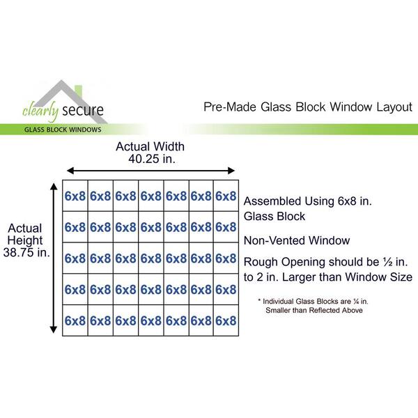 Be the first to ask a question for Clearly Secure 40.25 in. x 38.75 in. x 3.125 in. Frameless Diamond Pattern Non-Vented Glass Block Window