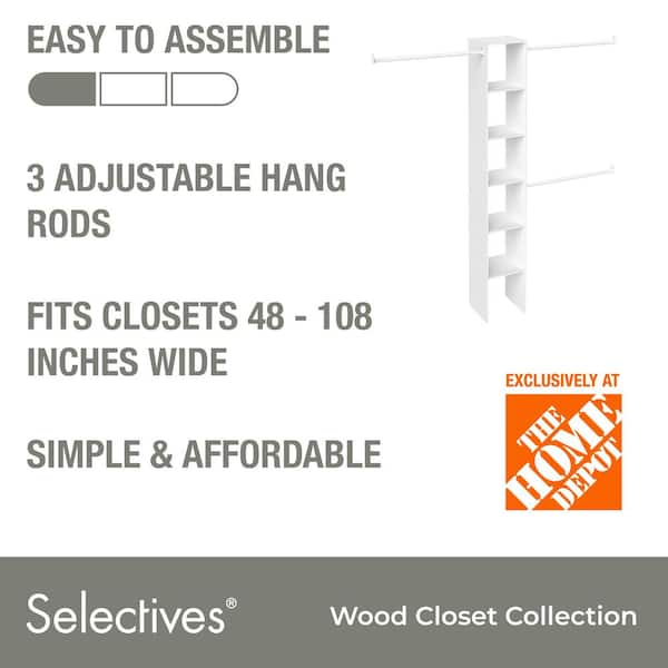 Questions and Answers for ClosetMaid Selectives 12 in. W White Custom Tower Wall Mount 6-Shelf Wood Closet System