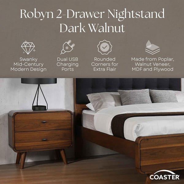 Be the first to ask a question for Coaster Robyn 2-Drawer Nightstand Dark Walnut