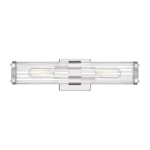 Be the first to ask a question for Cordelia Lighting Allison 18 in. 2-Light Polished Nickel Industrial Vanity Light with Clear Ribbed Glass Shades