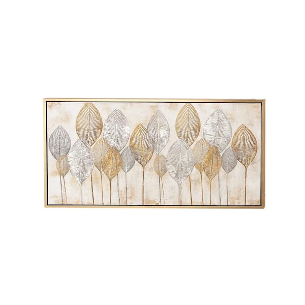 - Leaf canvas wall art with gold frame and sawtooth backing