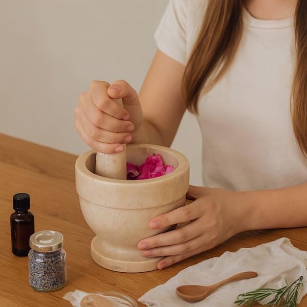 Questions and Answers for Creative Home 5.9 in. Dia x 5.9 in. H Natural Champagne Marble Mortar and Pestle Set with Spice Grinder