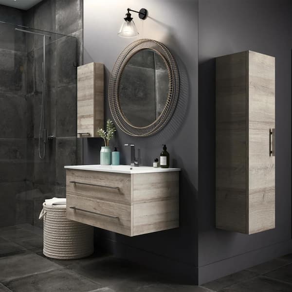 Questions and Answers for Cutler Kitchen and Bath Kato 30 in. W x 19 in. D x 20 in. H Single Sink Wall Bath Vanity Cabinet in Organic with Cultured Marble Top in White