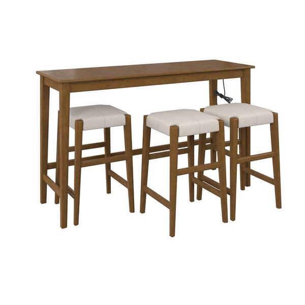 Dallon 60 in. Rectangle Wood Top Sofa Table with 3-Stools and USB Charger, Blonde
