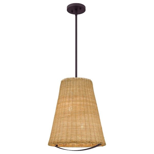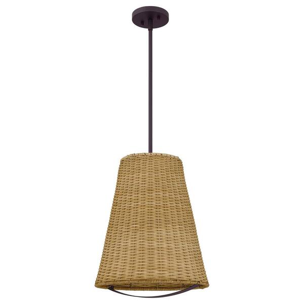 Cambria 1-Light Dark Brown Pendant with Rattan Shade