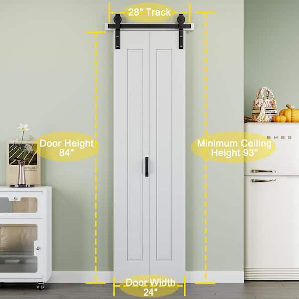 Questions and Answers for EH PUERTA 24 in. x 84 in. Easy Install 4-Panel White Primed MDF Composite Bi-Fold Sliding Barn Door with Hardware Kit and Handle