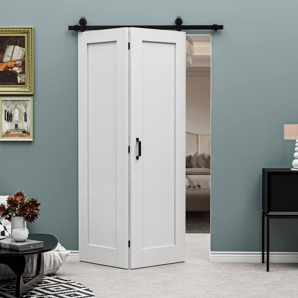 Questions and Answers for EH PUERTA 25 in. x 84 in. Paneled MDF White Primed H Shape Composite Bifold Sliding Barn Door with Hardware Kit