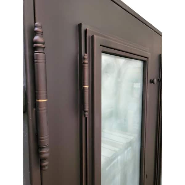 Questions and Answers for ERIS 62 in. x 81 in. 2-Panel Right-Hand/Inswing Operable Straight Frosted Glass Dark Bronze Iron Prehung Front Door