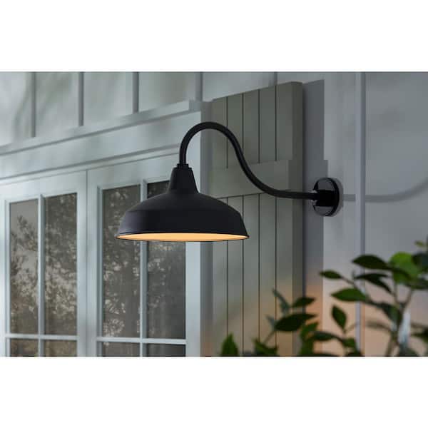 Questions and Answers for Hampton Bay Easton 14 in. 1-Light Matte Black Barn Outdoor Wall Light Lantern Sconce with Steel Shade