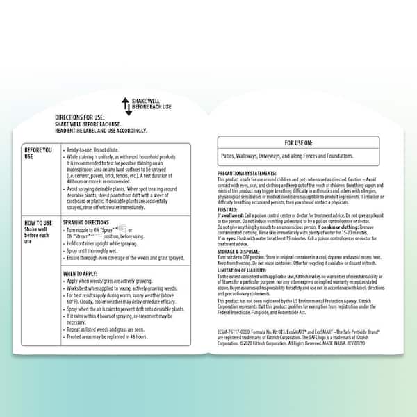 Questions and Answers for EcoSmart 64 oz. Natural, Glyphosate-Free Weed and Grass Killer with Plant-Based Rosemary Oil, Ready-To-Use Spray Bottle