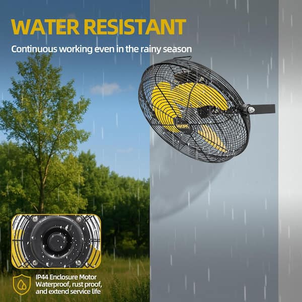 Questions and Answers for Edendirect 12 in. 3-Speeds Wall Fan in Yellow with IP44 Enclosure Motor, Metal Structure, 180-Degree Tilting, 6 ft. SJT Power Cord