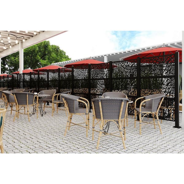 Questions and Answers for Ejoy 72 in. x 38 in. New Style Metal Art Laser Cut Metal Black Privacy Fence Screen, WideLine 2-Pole with 3-Panel Set