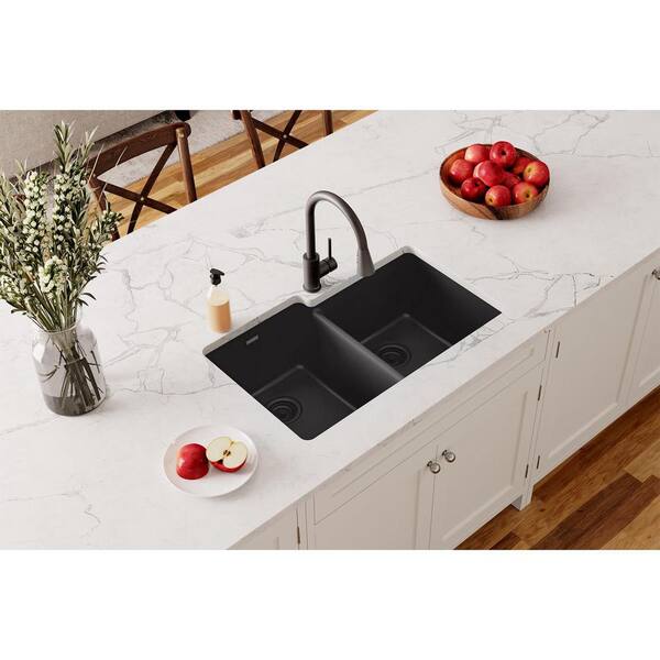 Questions and Answers for Elkay Quartz Classic Black Quartz 33 in. 55/45 Double Bowl Undermount Kitchen Sink