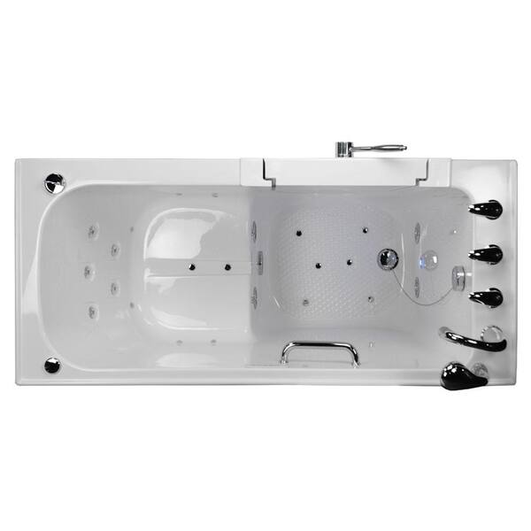 Questions and Answers for Ella 5 ft. Lounger Acrylic Walk-In Whirlpool and Air Bathtub in White with Left Outward Opening Door, HB Faucet Left Drain