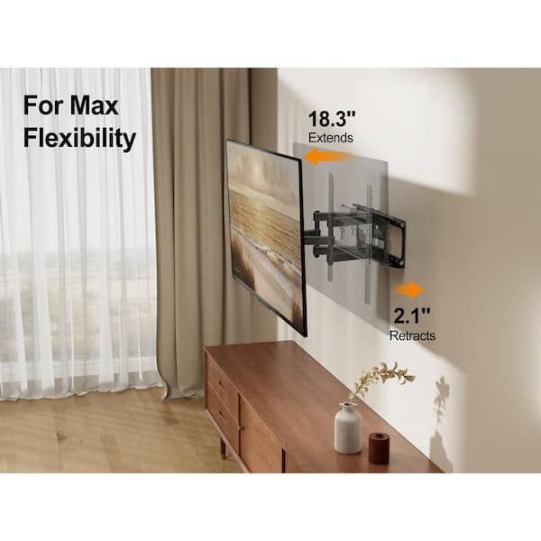 - Extends 2.1"–18.3", swivels 60°, tilts +5° to –15°
