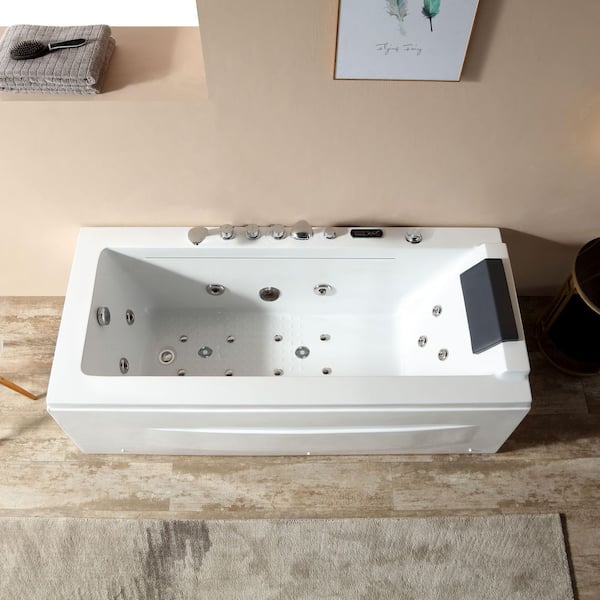 Questions and Answers for Empava 67 in. Left Drain Rectangular Alcove Whirlpool Lighted Bathtub in White with Water Jets - Tub Filler - Hand Shower