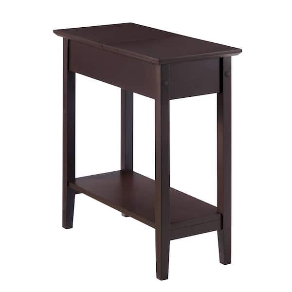 Questions and Answers for MAYKOOSH Espresso 1-Drawer Narrow End Table with Storage, Nightstand Flip Top Narrow Side Tables for Small Spaces, Slim End Table