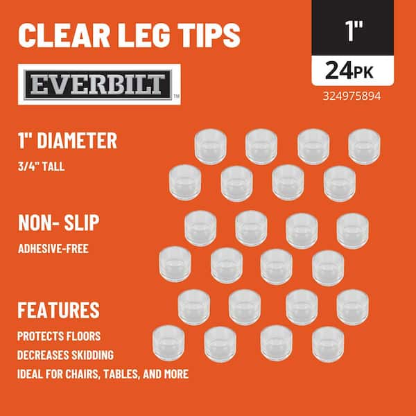 Questions and Answers for Everbilt 1 in. Clear Rubber Like Plastic Leg Caps for Table, Chair, and Furniture Leg Floor Protection (24-Pack)