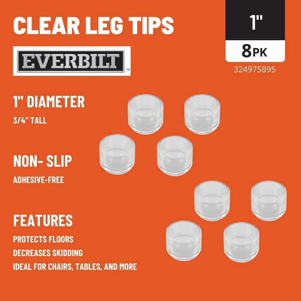 Questions and Answers for Everbilt 1 in. Clear Rubber Like Plastic Leg Caps for Table, Chair, and Furniture Leg Floor Protection (8-Pack)
