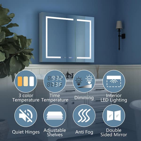 Questions and Answers for ExBrite 36 in. W x 30 in. H Medium Rectangular Silver Aluminum Recessed/Surface Mount Medicine Cabinet with Mirror and LED