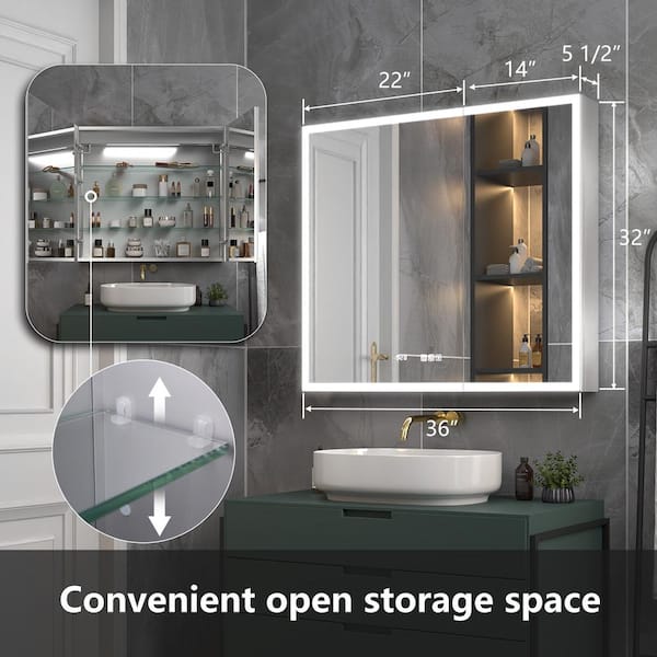 Questions and Answers for ExBrite 36 in. W x 32 in. H, Rectangular Silver Aluminum Recessed/Surface Mount Medicine Cabinet with Mirror, LED and Clock