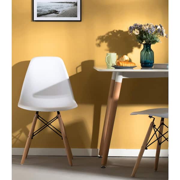 Be the first to ask a question for FABULAXE Mid-Century Modern White Style Plastic DSW Shell Dining Chair with Solid Beech Wooden Dowel Eiffel Legs