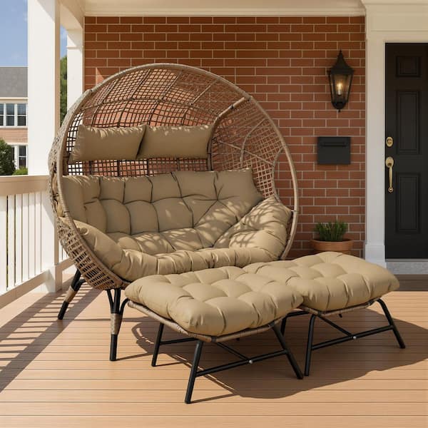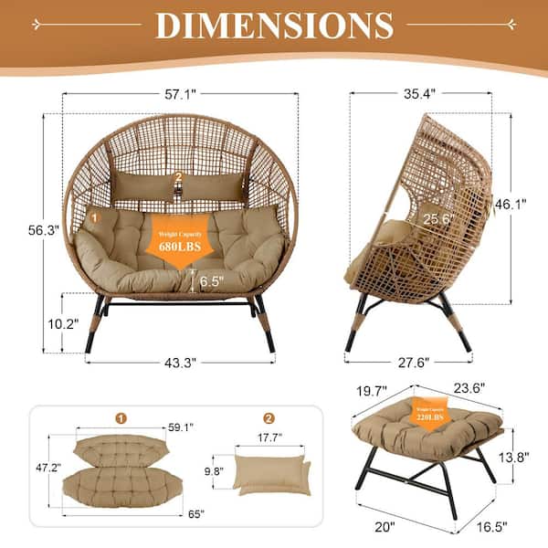 Questions and Answers for FINCATI 2-Person Brown Double PE Wicker Outdoor Lounge Egg Chair with Brown Cushion and 2 Pcs Ottoman