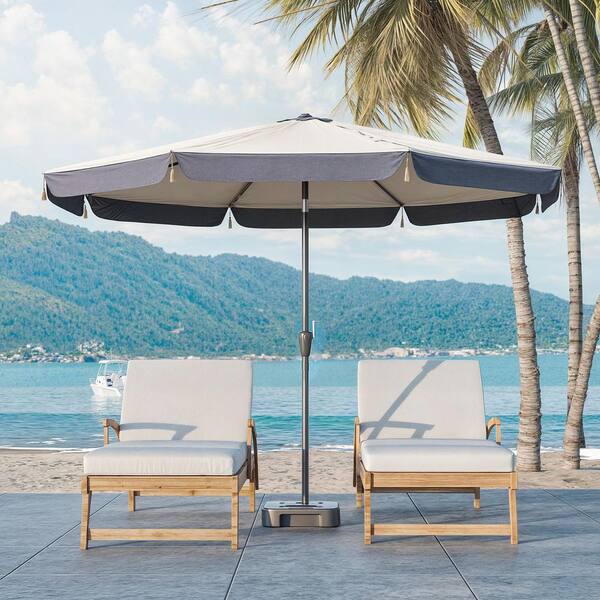 Be the first to ask a question for FUFU&GAGA 10 ft. Outdoor Market Umbrella with Fringe, Large Patio Umbrella for Poolside, Deck, Garden in White and Navy Blue