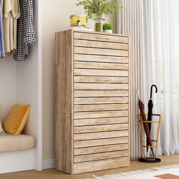 Questions and Answers for FUFU&GAGA 42.3 in. H x 22.4 in. W Brown Wood Grain 18-Pair Shoe Storage Cabinet with 3-Drawers for Entryway Hallway