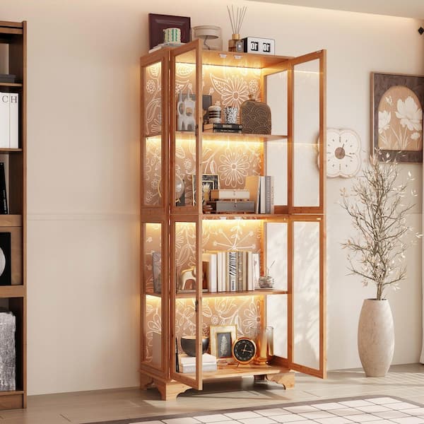 Be the first to ask a question for FUFU&GAGA 74.2 in. Tall Natural Wood Cedar and Tempered Glass 4-Shelf Bookcase with LED Lights, China Cabinet, Storage Organizer