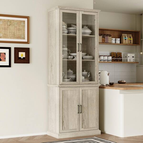 Questions and Answers for FUFU&GAGA Vintage Style Beige Wood Grain Wooden 31.5 in. W Sideboard, Bookcase, Storage Cabinet with 5-Shelves and 4-Doors