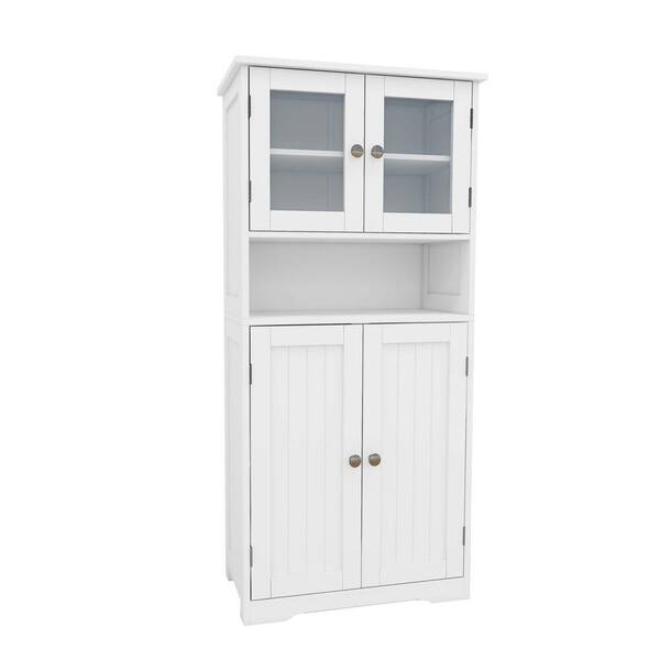 Questions and Answers for FUNKOL 50 in White Freestanding Bathroom Storage Cabinet with Glass Doors & Adjustable Shelves and Open Compartments