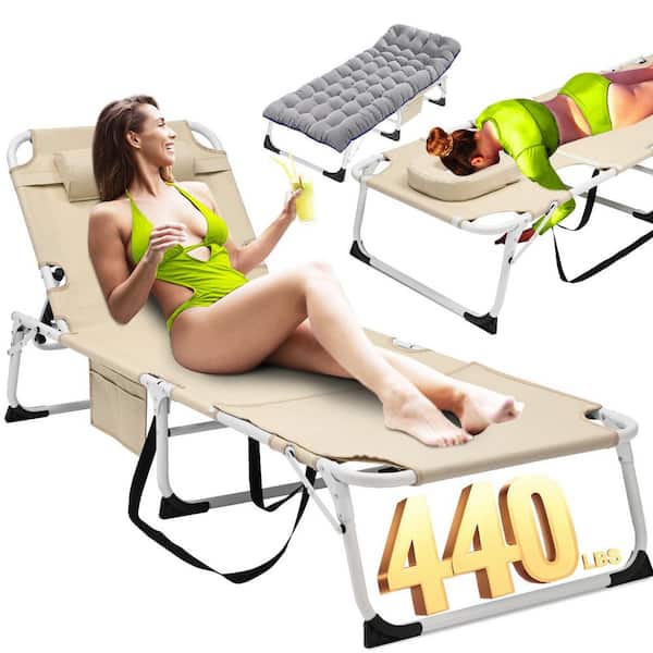 Questions and Answers for BOZTIY Face Down Tanning Chair w/ Face Arm Hole 5-Position Chaise Lounge Chair Beach Chair Metal Folding Camping Cot, Beige