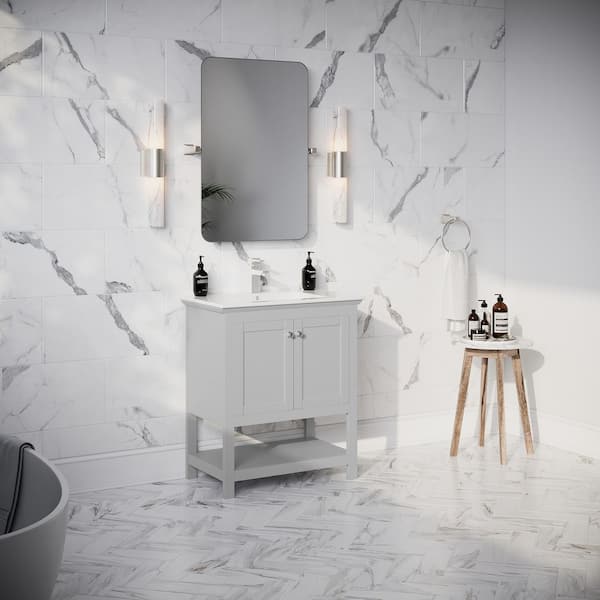 Questions and Answers for Fresca Manchester 30 in. Single Sink Shaker-Style Gray Bath Vanity with White Quartz Top and Integrated Sink