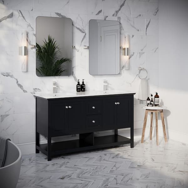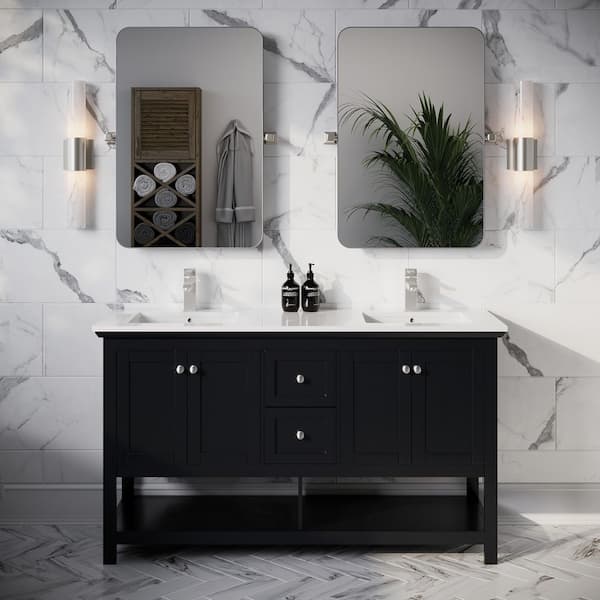 Questions and Answers for Fresca Manchester 60 in. Double Sink Shaker-Style Black Bath Vanity with White Quartz Top and Integrated Sink