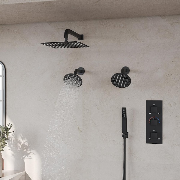 Questions and Answers for GRANDJOY ZenithRain Shower System 8-Spray 12&6&6 in. Dual Wall Mount Fixed and Handheld Shower Head 2.5GPM in Matte Black