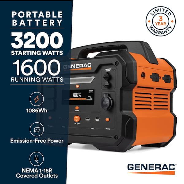 Questions and Answers for Generac 1600W Output / 3200 Peak 1086Wh Portable Battery Power Station with Push Button Start and Solar Charging - GB1000