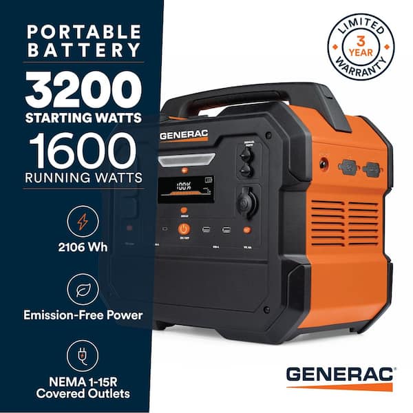 Questions and Answers for Generac 1600W Output / 3200 Peak 2106Wh Portable Battery Power Station with Push Button Start and Solar Charging - GB2000