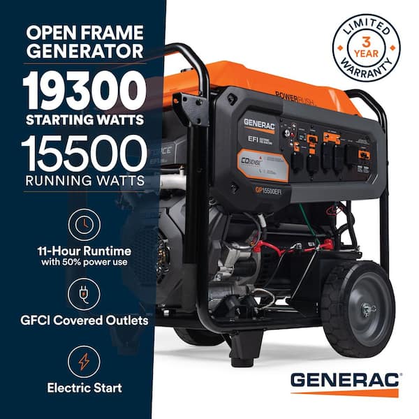 Questions and Answers for Generac 19300 / 15500-Watt Gas Portable Generator with Electric Start - GP15500E