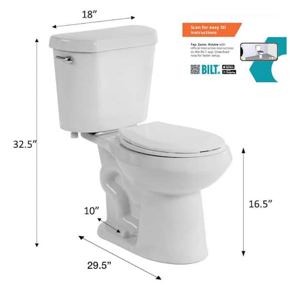Questions and Answers for Glacier Bay 10 inch Rough In Two-Piece 1.28 GPF Single Flush Elongated Toilet in White Seat Included