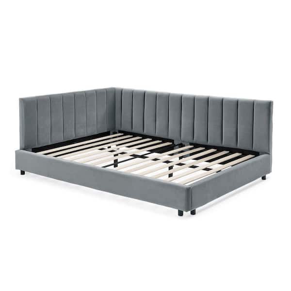 Be the first to ask a question for Gray Full Size Upholstered Corner Daybed Modern Velvet Sofa Bed Frame with Backrest for Bedroom, Living Room