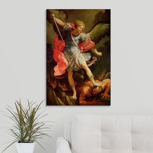 "The Archangel Michael defeating Satan" by Guido Reni Canvas Wall Art