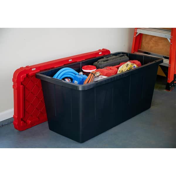 Questions and Answers for HDX 55 Gal. Tough Storage Tote in Black with Red Lid